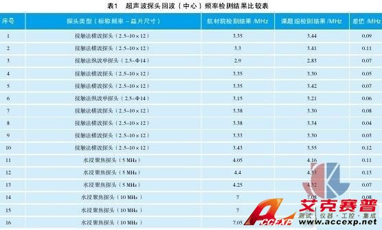 比較本裝置的測量誤差和超聲波探頭回波頻率技術(shù)指標(±10%),滿足<1/3的量傳比例關(guān)系。