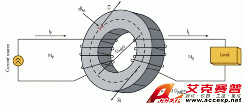 根據(jù)安培定律,電流IP流過匝數(shù)為NP的繞組(圖2)時,根據(jù)磁力線長度IM將產(chǎn)生磁場,可由微分方程表示: