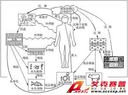 在核事故的不同階段,公眾可能受到輻射照射的主要途徑也有差別。事故早期,主要是煙羽外照射和吸入煙羽中放射性物質的內照射;事故中期,地面沉積的放射性物質外照射及攝入輻射污染的食品和水的內照射,可能是主要照射途徑;事故晚期,主要照射途徑可能是受輻射污染的食品和水引起的內照射。