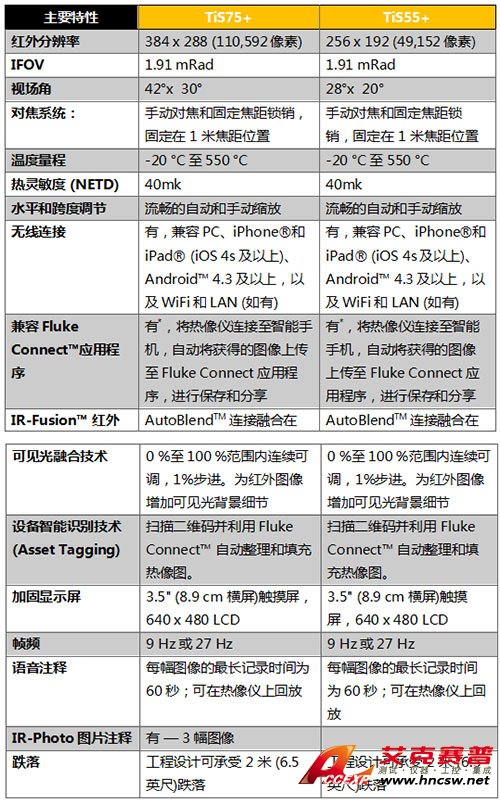 相比原有型號(hào)(FlukeTiS75和TiS55),新產(chǎn)品的像素提高了44%(TiS75+:384x288像素;TiS55+:256x192像素),這將為用戶提供更加清晰和準(zhǔn)確的測(cè)量結(jié)果。同時(shí)熱靈敏度由0.08℃升級(jí)至0.04℃,能夠檢測(cè)到更微小的溫度變化。