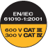 EN/IEC 61010-1:2001; 600V CAT III, 300V CAT IV