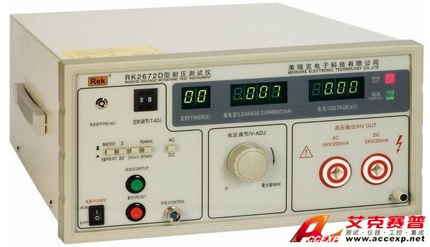 RK2672D 型耐壓測試儀可以測試5KV,200MA。