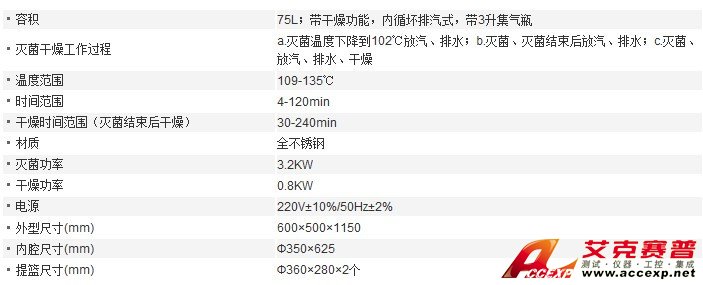 博迅YXQ-LS-75G壓力蒸汽滅菌器技術(shù)規(guī)格: