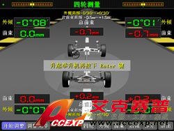 | 舉升調(diào)整測量系統(tǒng):功能畫面設(shè)計(jì)了,可以在輪子離開地面傾斜的情況下完成定位角度的調(diào)整 | 前束測量 |
