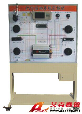 TSI QC614型汽車音響系統示教板汽車音響(含收音機、DVD機、CD/VCD機、卡帶式收錄機)系統實物,展示汽車音響(含收音機、DVD機、CD/VCD機、卡帶式收錄機)系統的結構與原理;面板上繪有完整的音響(含收音機、DVD機、CD/VCD機、卡帶式收錄機)系統的電路圖,設置有檢測端子,可通過儀器儀表檢測各種信號參數如電壓、電阻、頻率等。