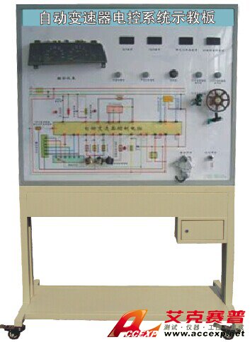 變速器控制單元、變速器電磁閥總成、車速傳感器、儀表、換檔開關等。檢測端子、故障設置系統(tǒng)、大容量蓄電池或12V開關電源、大型彩色噴繪電路原理圖、控制面板、可移動臺架、使用說明書及任務驅(qū)動式實訓指導書等。