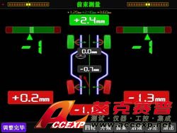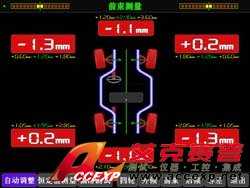 測量系統:外傾角設計了以車輪傾斜和顏色的變化來區分;總前束、獨立前束設計了以車輪的變動和顏色來區分