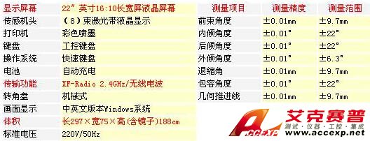 備有一萬多種定位車型資料庫,還可自行增加新車種資料,或需廠家升級        完整的定位測量系統,包含(S.A.I,K.P.I)主鎖內傾角、后傾角、外傾角、總前束、獨立前束、退縮角、幾何推進線、恒定值等