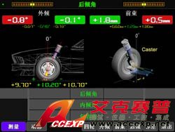單獨的測量系統:(外傾角)功能畫面設計了,以車輪傾斜變化和顏色的區分不復雜,清晰及容易解說