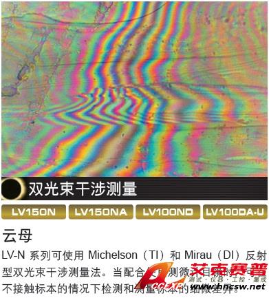 可支持多種觀察方法:明場、暗場、偏光、微分干涉、落射熒光和雙光束干涉測量觀察功能。此外,LV100DA和LV100DA-U還可提供透射型微分干涉、暗場、偏光和相襯觀察功能。