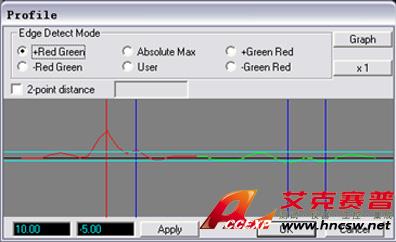 在一個采樣域內,可能存在有多個邊界信號,NEXIV 允許客戶根據自身的需要來選擇所需檢出的邊界; 客戶可以在灰度變化率顯示窗內,指定邊界檢出的條件; 當工件圖象的對比度較低時,客戶還可以通過調整邊界變化率檢出的閾值,來提高邊界的檢出性能。