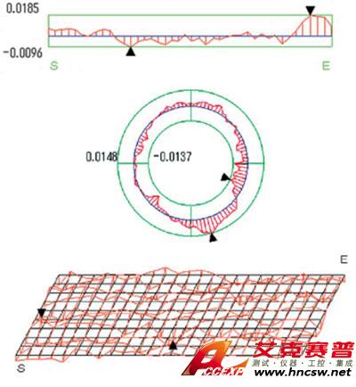 用選配的掃描輪廓分析軟件可以對掃描結果進行輪廓偏差分析 直線、圓、平面等幾何要素,可以做如下形式的顯示(無需專用的輪廓分析軟件):