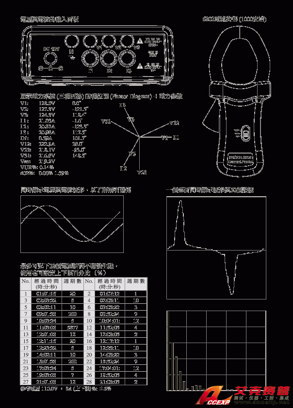電流測(cè)量從 0.1mA 到 3000A , 可測(cè)小型IT待機(jī)耗電量到大型電力系統(tǒng)的最大需求