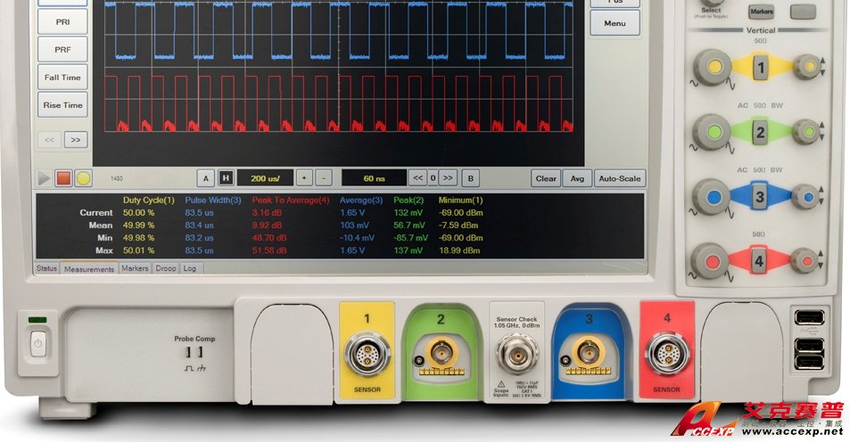 Agilent 8990B 峰值功率分析儀采用簡單易用和高性能的設計,并配備了15英寸 XGA 彩色觸摸屏,Agilent 8990B 峰值功率分析儀可同時顯示四個通道結果,提供更多的圖像細節。Agilent 8990B 峰值功率分析儀提供高達 100 MSa/s 的采樣率,研發工程師由此可以獲得所需的高分辨率來探測信號跡線中的異常情況,從而對設計進行改進。