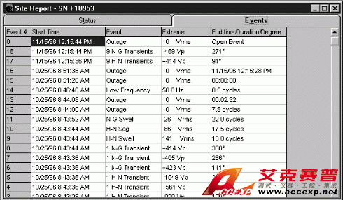 用戶可以將數據從記錄儀中取出來,將其備份到計算機。EventView軟件可以下載記錄儀插入到插座期間記錄到的完整的事件記錄。利用該軟件,用戶可以創建包括驟降、驟升、瞬態現象、斷電和頻率漂移等事件的詳細報告,并具有時標。PC和VR101的通信是通過光纜實現的。也就是說PC和VR101記錄儀是隔離的,非常安全。事件記錄儀有一節可使用7年的鋰電池供電,所以不受電源斷電的影響。每一VR101記錄儀都有其自身的實時時鐘,用于對電壓事件加時標,并且由工廠同一分配的代碼識別。利用其時鐘和ID代碼,在工廠內可放置多個記錄儀,從而獲得完整的電能質量布局。