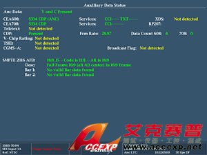 利用Aux數據狀態顯示,可以監視附屬數據(包括隱蔽字幕、時間 碼和AFD 等)。