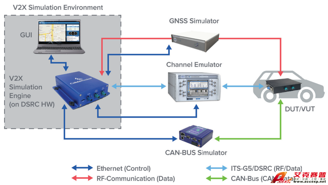 使用思博倫GNSS模擬器實現被測V2X ECU的精確位置仿真。