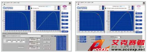 型號62150H-600S/1000S直流電源具有可模擬太陽能板的I-V曲線,使用者可編輯多種不同溫度及照度下的I-V曲線及特殊有遮罩下的曲線,此可應用于太陽能逆變器的最大功率追蹤(MPPT)效能測試。如圖示A&B,使用者可非常容易地使用SoftPanel軟體編輯I-V曲線后下載至單機內記憶體,并且可即時輸出&量測顯示太陽逆變器的最大功率追蹤狀況及記錄。