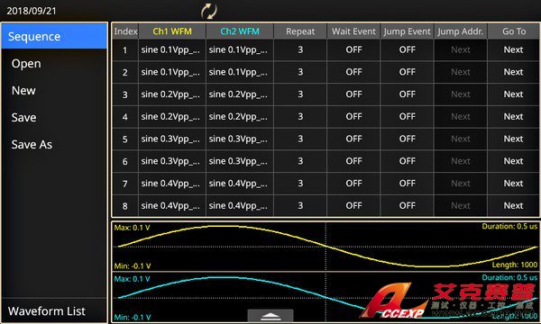 AFG31000 系列是第一個擁有全功能基本模式(AFG)和高級(序列)模式的任意波函數發生器。