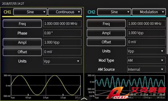在基本模式下,AFG31000 生成傳統(tǒng)函數(shù)和任意波形。觸摸屏和前面板控制功能可以簡便地進行設(shè)置。