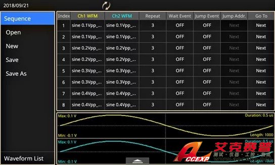 高級模式可以使用靈活的步進控制功能,構(gòu)建復(fù)雜的波形序列