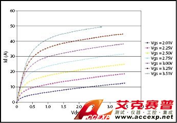 1μV 測量分辨率和高達50A (2 個單元可達 100A)的電流源輸出確保低電平Rds 測量,支 持新一代器件。