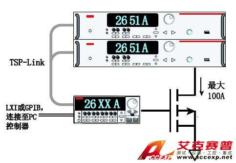 • 多臺2600A 系列儀器連接在一個系統 中,實現并行測試和精密定時。